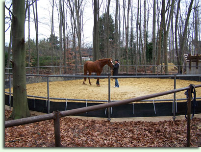 Zum Hof gehört auch ein kleines Wäldchen mit Reitwegen. Dies kann ideal zum Trockenreiten nach der Arbeit mit dem Pferd genutzt werden.